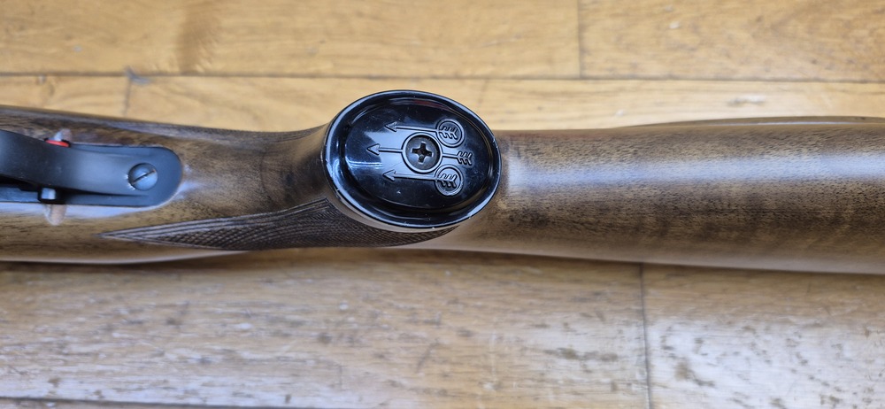 Son canon cylindrique de 21 mm de diamètre extérieur, du quasi canon lourd, est annoncé aussi en acier spécial. Il ne doit effectivement pas beaucoup vibrer… Ce canon est absolument miroir – Juste superbe avec de très belles rayures. Beretta a vraiment soigné le boulot. TBE+++ ici.