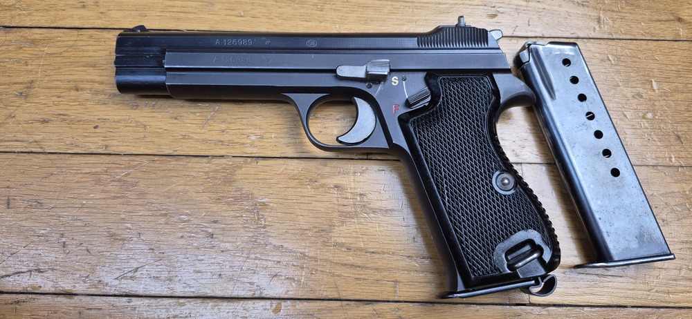 En 1944, deux de ceux-là sont présentés au concours de sélection de l’Armée Suisse – le premier est le SP44/16, une sorte de P210 à plus grosse poignée car on y loge un chargeur 16 coups double-colonne. Le second est une arme en 8 coups présentée sous la dénomination SP44/8.