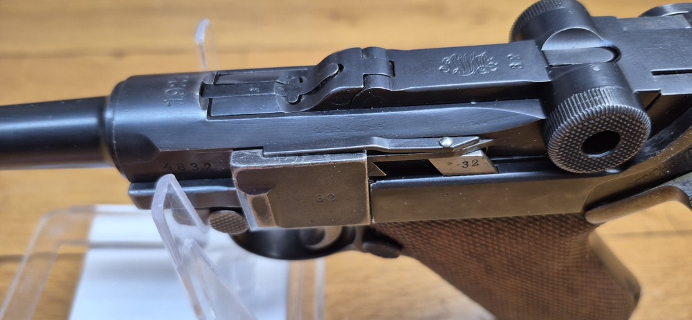 Ils sont généralement (pas uniquement) sans aucune date en chambre (1er moyen de les reconnaitre car c’est peu courant dans la grande famille Luger), souvent avec des poinçons civils (on se cache, on se cache…), et tous dans des numéros à 5 chiffres et sans aucune sans lettre suffixe. Surtout, ils sont tous entre les numéros de série 74845 et 91989.